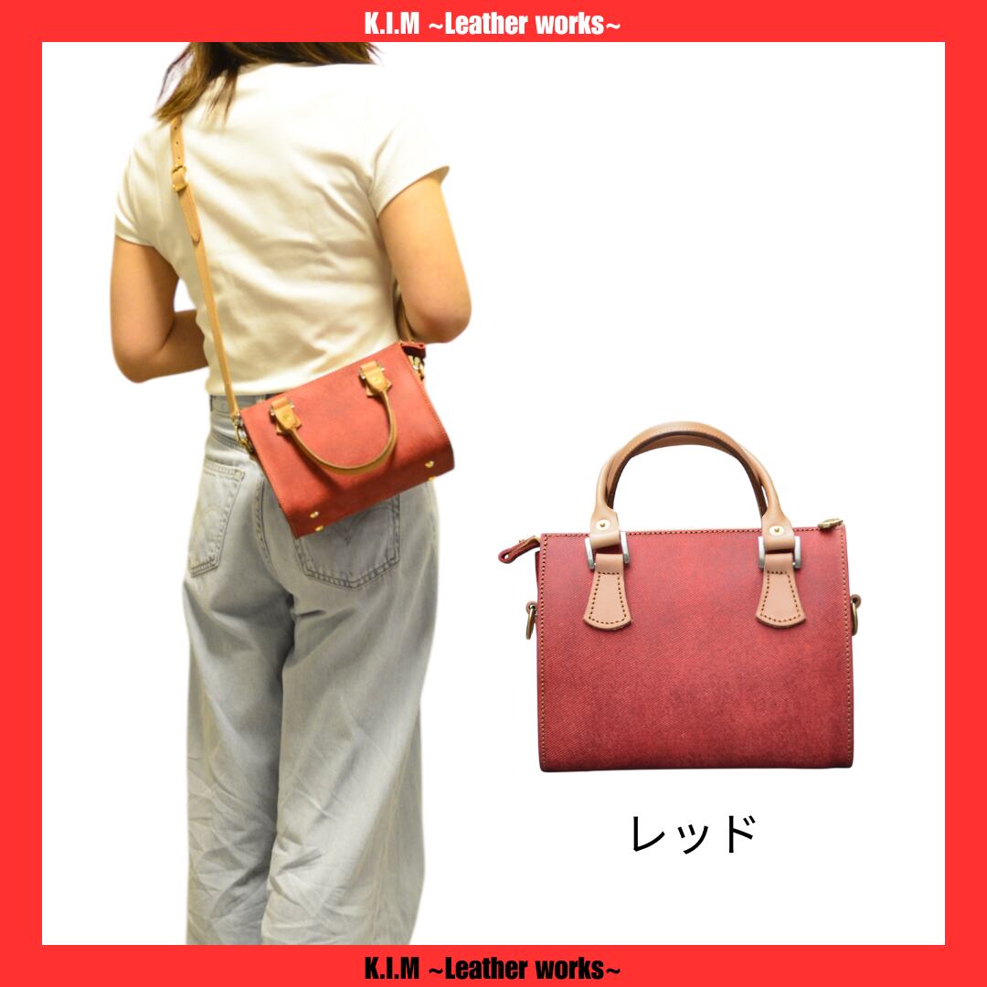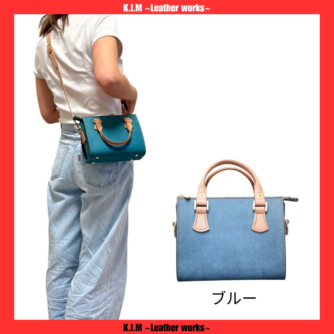 シンプルなファッションに向けたバッグで、シンプルなデザインでもデニム調のレザーバッグでカラーでワンポイントに。